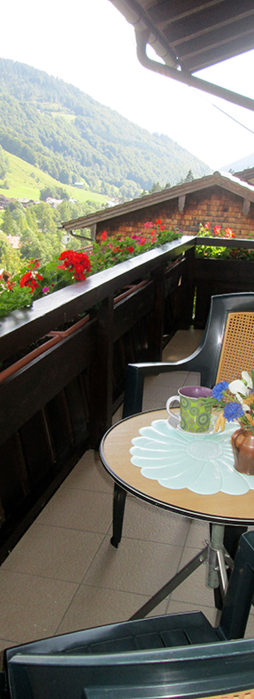 Der möblierte lange Balkon für Sie allein mit schöner unverbauter Aussicht ist besonders im heißen Hochsommer bei Gästen beliebt wegen seiner schattigen Lage und der tollen Aussicht.